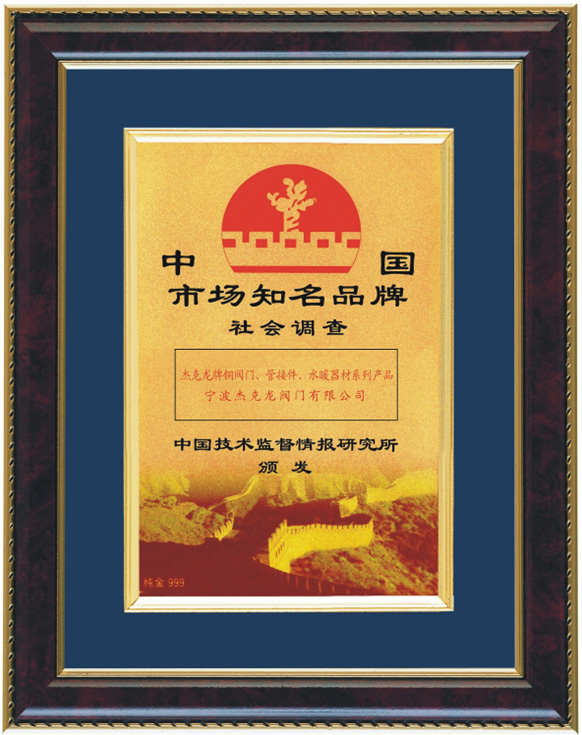 中國市場知名品牌證書